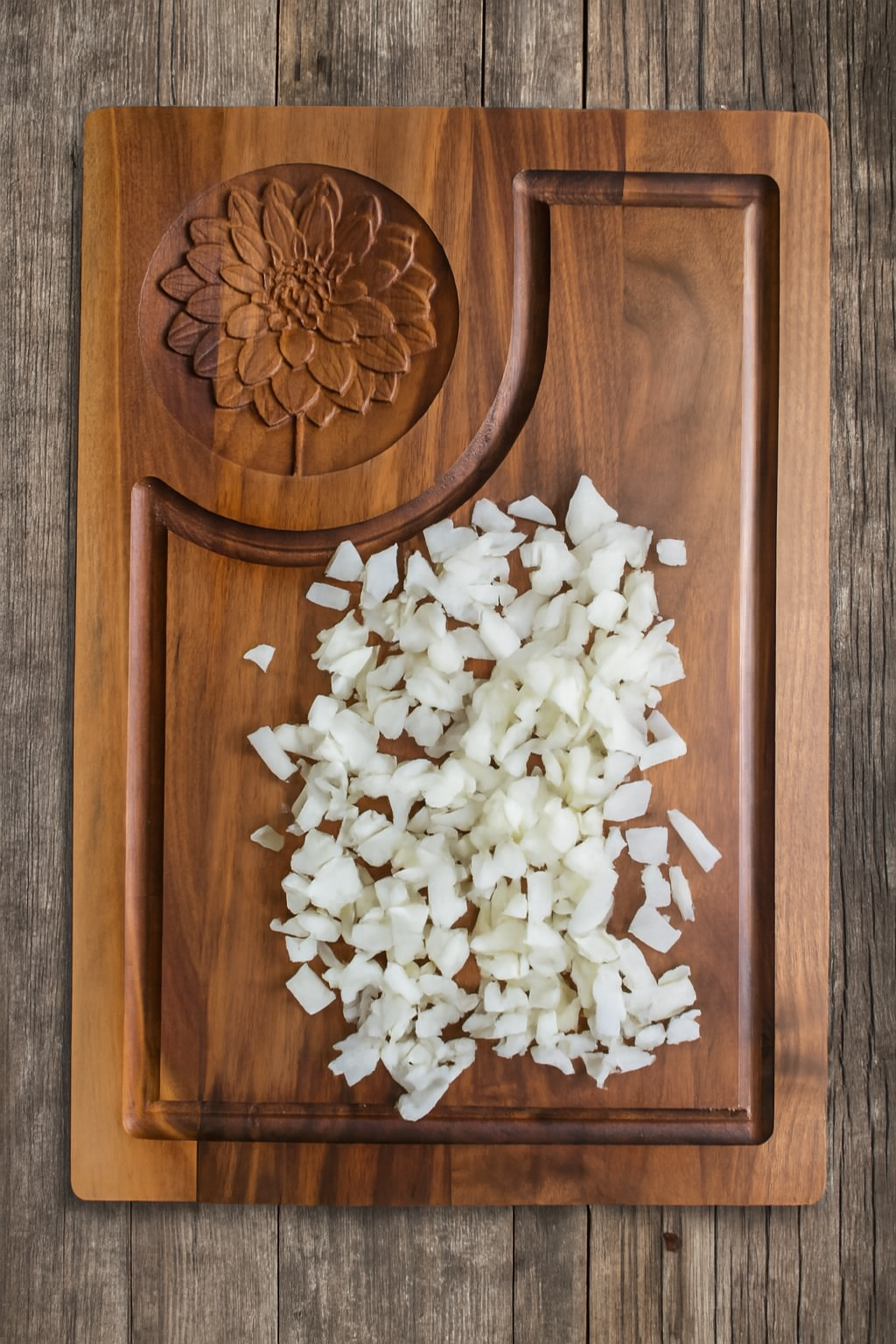 This beautiful design of a Dahlia is carved into a 9 3/4" x 13 3/4" walnut cutting board. This is ideal for chopping fruit and vegetables or your favorite meat dish. A food grade mineral oil and bees wax brings out the wood grain and carved pattern. Proudly display this beautiful and unique art piece on your counter or table. Note: Lighting angles change the photos color.
